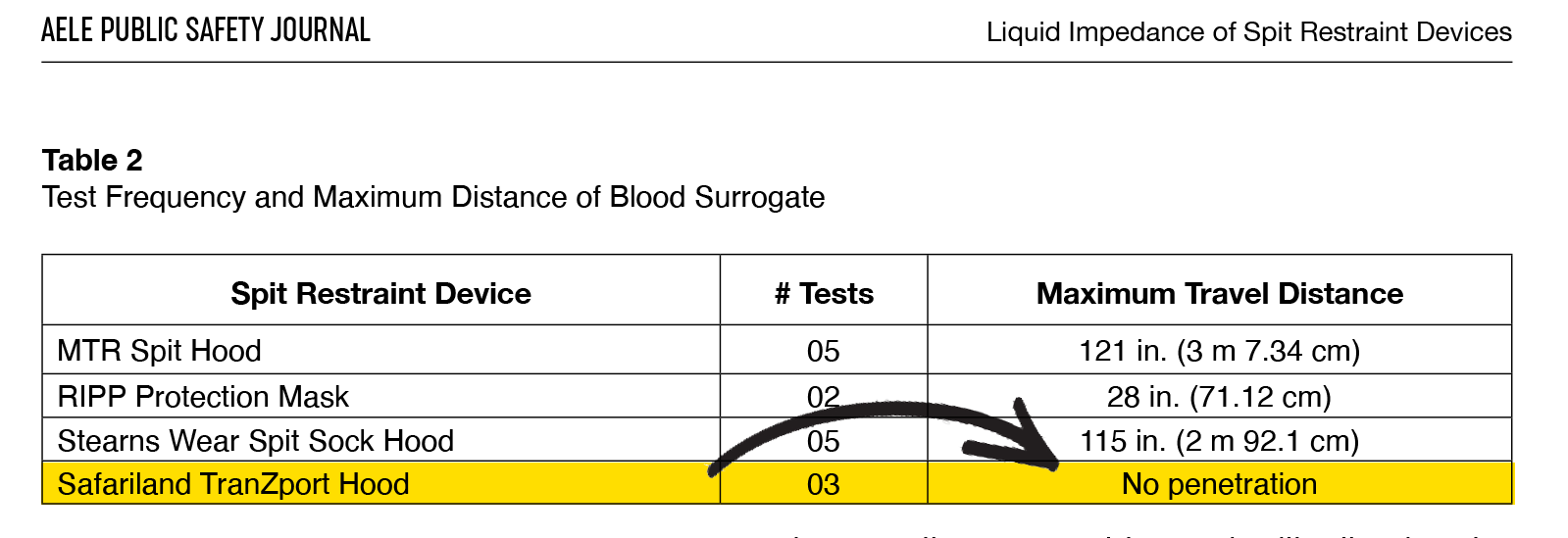 “…the Tranzport Hood was the only SRD that stopped liquid penetration.”*